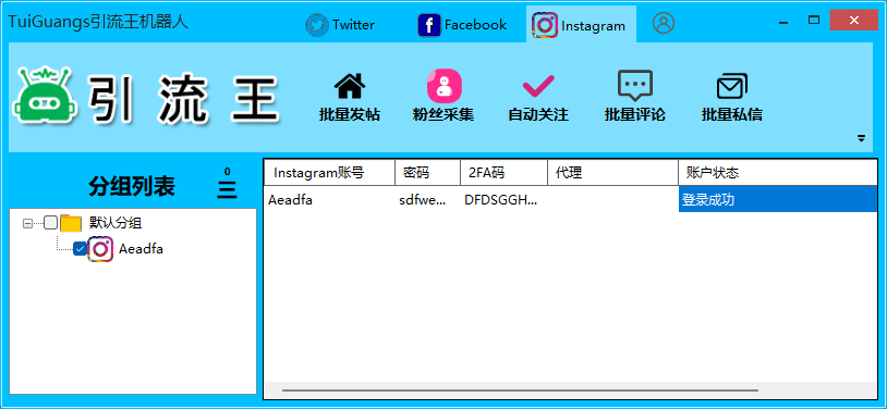 Instagram引流王自动批量评论首先登录软件,点击【批量评论】按钮,进入相关设置左边选择ins账号,右边设置ins的贴文地址以及评论内容,支持批量导入添加...